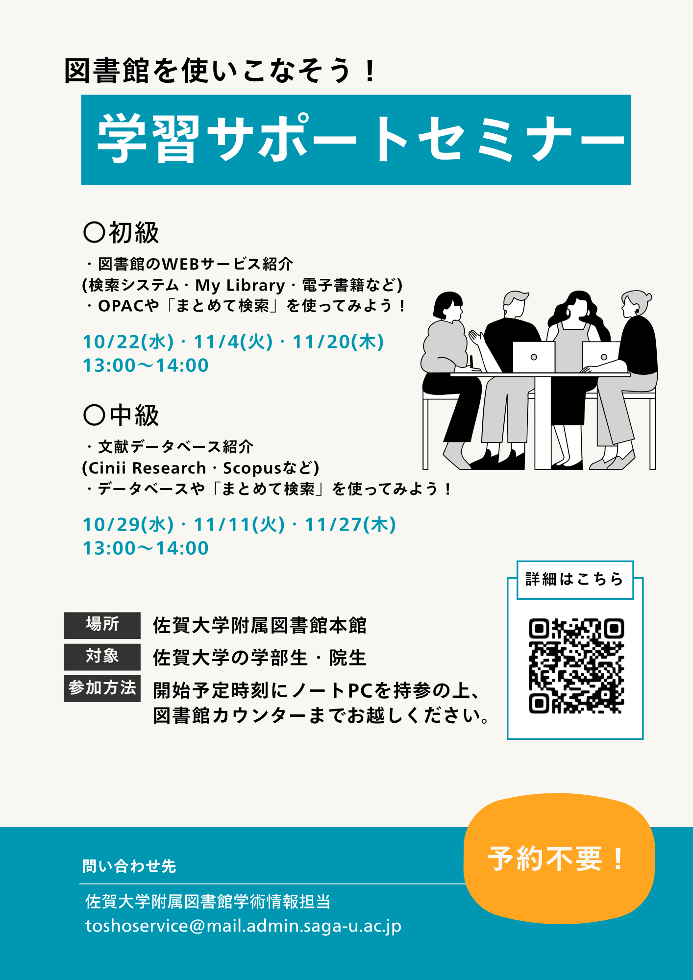 予約は不要です。学部生・院生が対象です。
