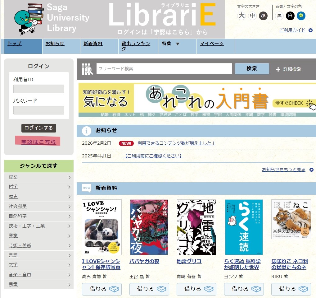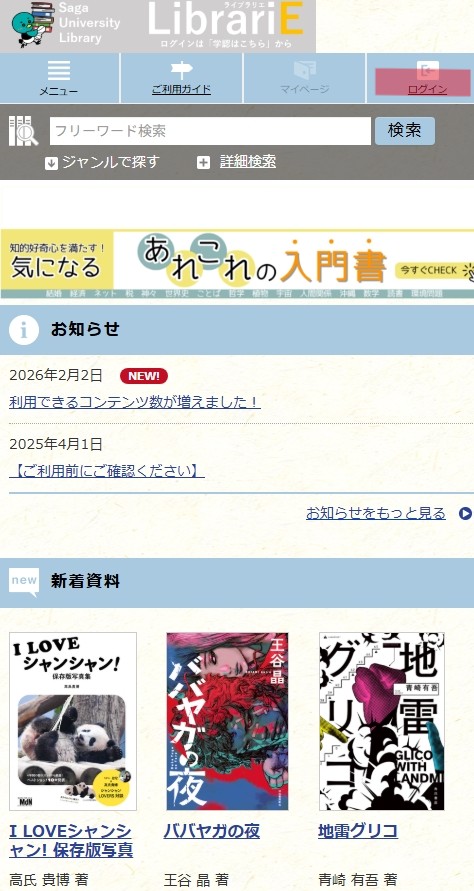 利用できるコンテンツ数が約150冊(小説、就活、TOEIC対策、旅行ガイドなど)増えました。「新着資料」からご覧ください。